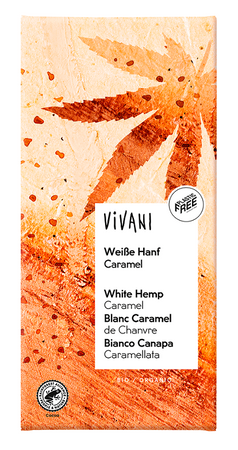 CZEKOLADA BIAŁA Z KARMELIZOWANYMI NASIONAMI KONOPI I WANILIĄ BIO 80 g - VIVANI