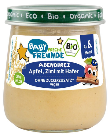 MUS JABŁKO - OWIES - CYNAMON BEZ DODATKU CUKRÓW OD 8 MIESIĄCA BIO 120 g - FRECHE FREUNDE